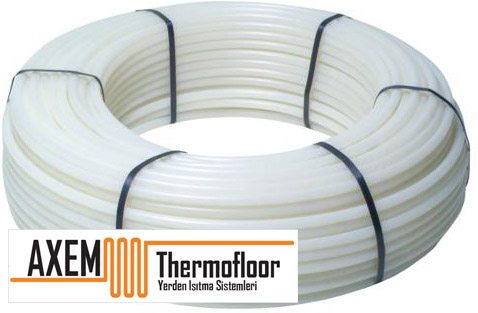 Axem PE-RT oksijen bariyerli 5 katman yerden ısıtma borusu ısıtma gerektirmeden döşenebilen esnek yapısı sayesinde rakiplerine göre fark yaratmaktadır. Yüksek teknoloji ile üretilen yerden ısıtma borularımız soğutma uygulamalarında da kullanılabilmektedir. Tüm yerden ısıtma uygulama alanlarında uzun yıllar hizmet veren borularımız 50 yıl garantili olup düşük sıcaklık derecelerine de dayanabildiği için soğuk hava depolarının zemin ısısının iyileştirilmesinde ve buz pisti gibi uygulamalarında da kullanılabilmektedir. Oksijen bariyerinin boru yüzeyinde değilde orta katmanda olması sebebiyle döşeme esnasında döşeme hatalarından kaynaklı oksijen bariyeri katmanının duvarlara sürtünmek suretiyle yüzeyden sıyrılması söz konusu değildir. 16 * 2 mm , 17 * 2 mm , 20 * 2 mm ve 25 * 2.2 mm borularımız tüm yerden ısıtma uygulamaları ve çim saha ısıtma uygulamalarında kullanılabilir. Ayrıca 14 mm çapındaki yerden ısıtma borularımız duvardan serinletme sistemleri ve tavandan serinletme sistemlerinde rahatlıkla uygulanabilmektedir. Borularımız 6 bar ve 70 derece basınç sınıfında olup yüksek statik basınç dayanımı istenen ve yüksek derecelerle işletilecek binalar için, aynı çaplarda PE-Xa üretimimizde bulunmakta olup stoklu çalışmamız nedeniyle her türlü yerden ısıtma borusu taleplerinize Axem olarak çok kısa sürede cevap verebilmekteyiz.