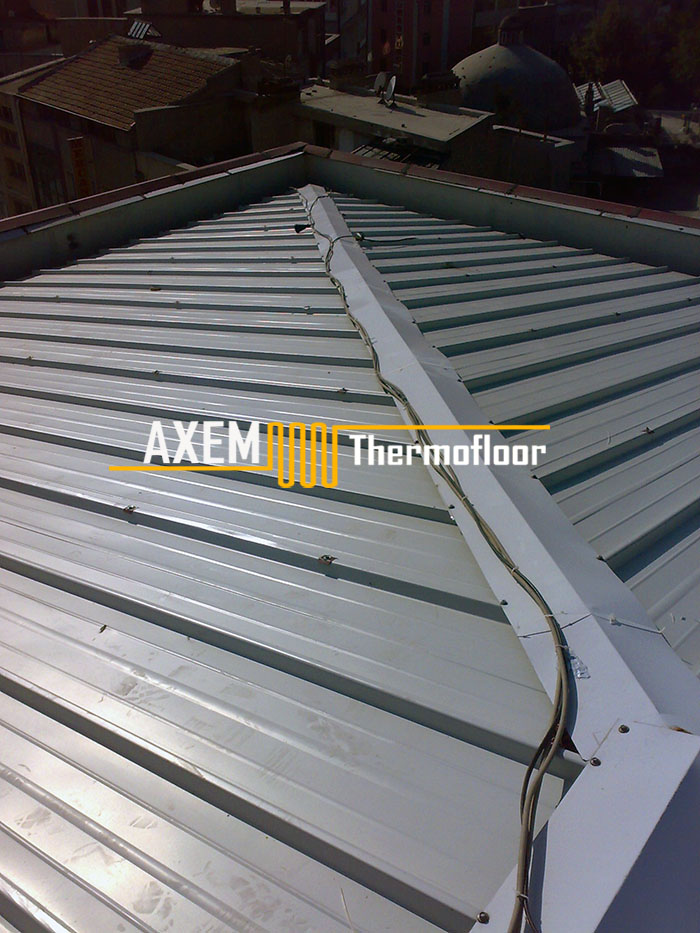 Toplam 98 metre uzunluğundaki oluklar ve 8 farklı iniş borusu için, 8 parça toplam 490 m ısıtma kabloları uygulanmıştır. Kablolar oluklara monte edilen, alüminyum şeritler (DEVIFAST) üzerine döşenmiştir. Sistem, yerleştirilen dijital sensör (1 adet) ve bağlı bulunduğu elektronik termostat (1 adet) ile tam otomatik olarak çalışacak şekilde dizayn edilmiştir.