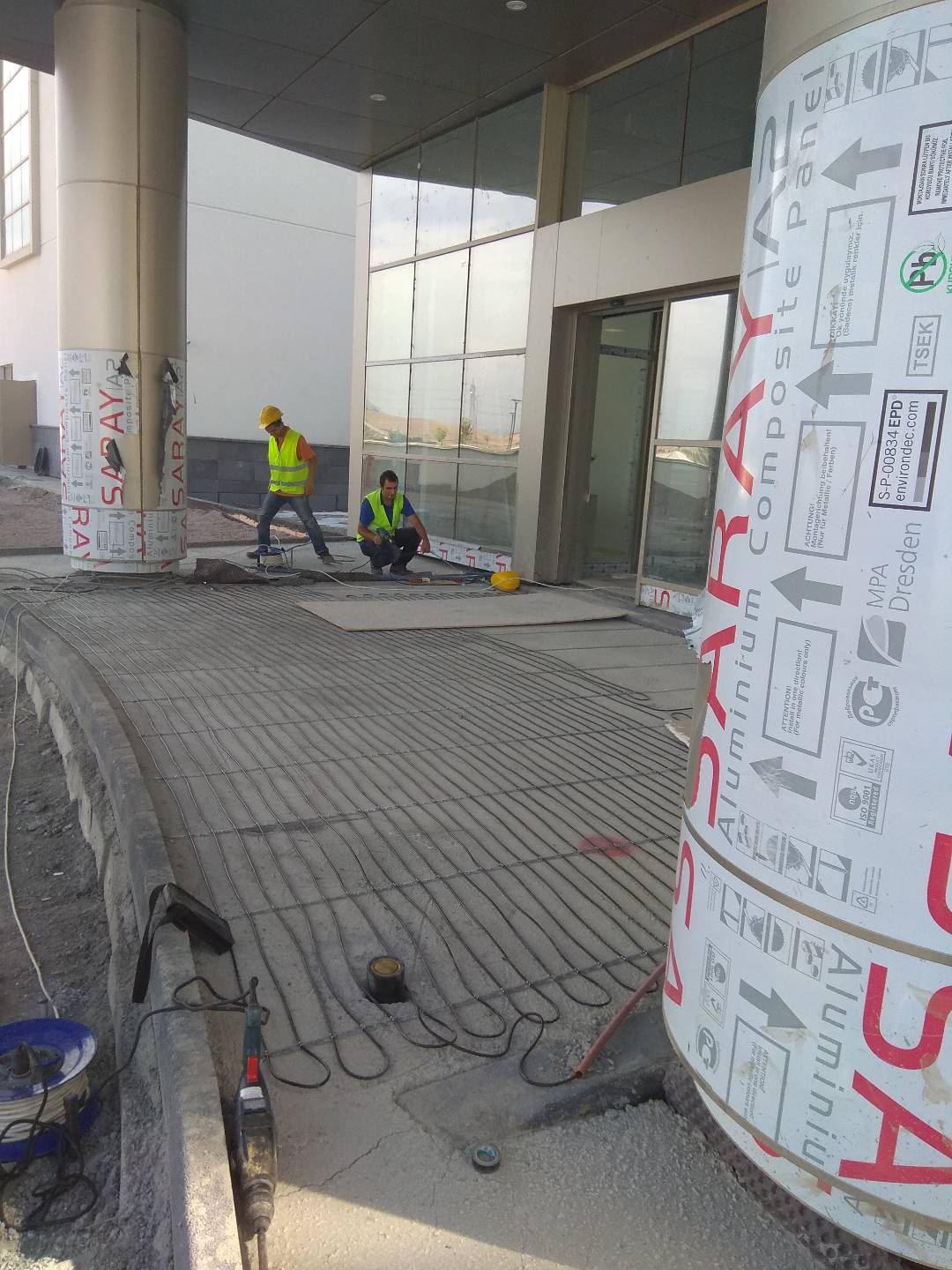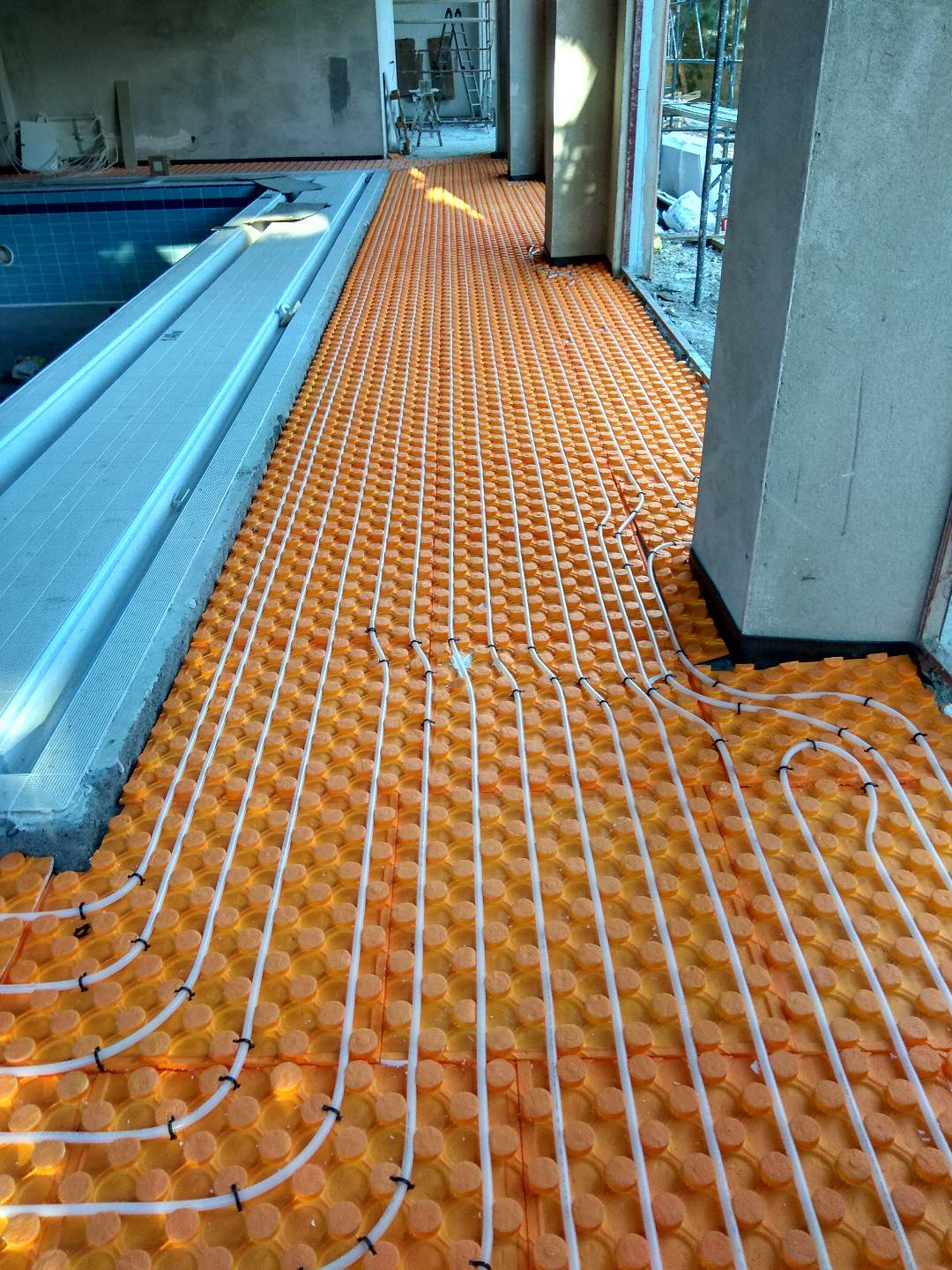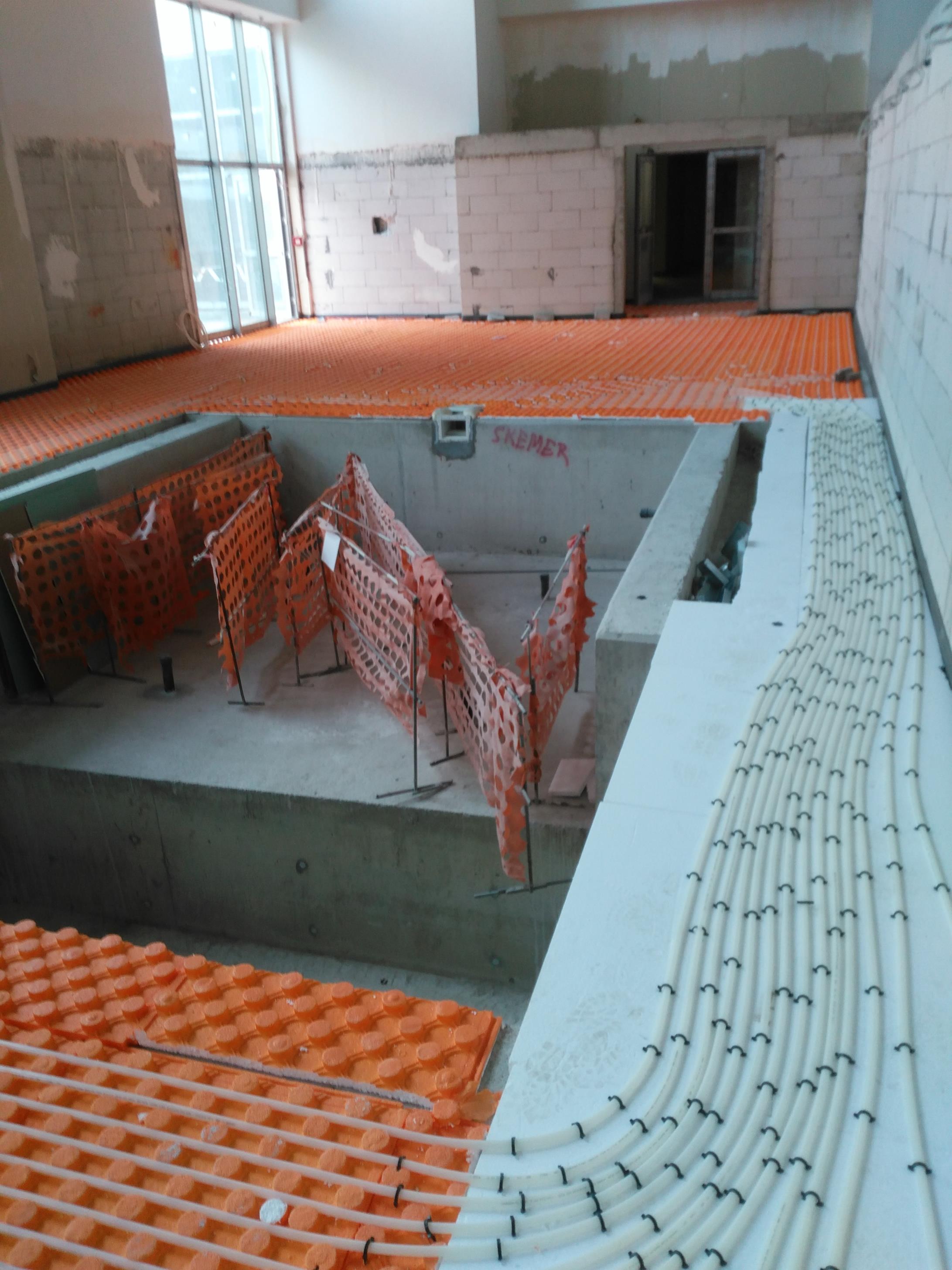 Yerden ısıtma sistemleri fizik tedavi havuz kenarına uygulanmıştır.